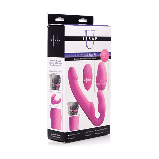 Inflatable Strapless Strap On Dildo with Remote Control Pink 5.75 Inches Insertable Length