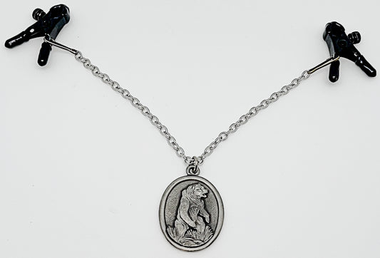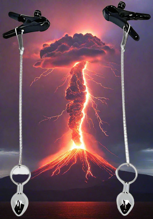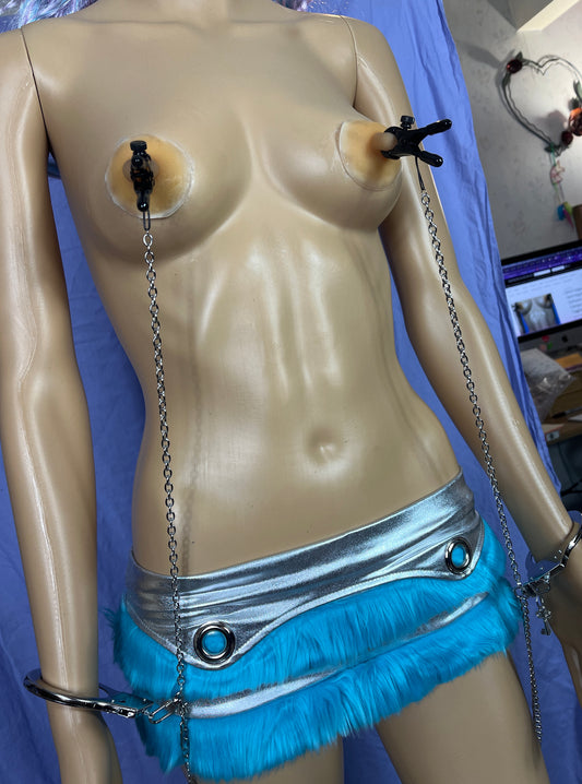 Nixie Metal Butt Plug with Inlaid Jewel and Cuff Set with Bullnose Nipple Clamps