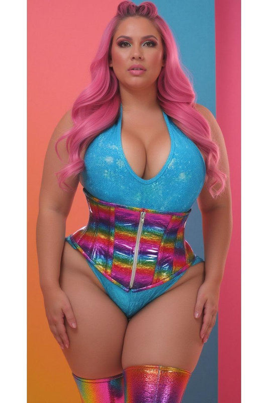 Rainbow Glitter Hologram Steel Boned Waist Cincher