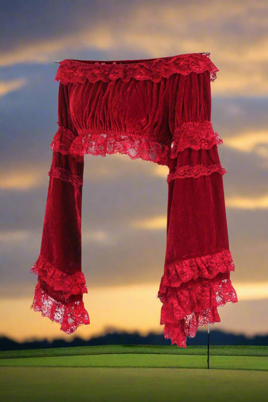 Red Velvet Smocked Flare Sleeve Peasant Top