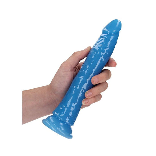 Shots RealRock 9" Slim Dildo Glow in the Dark - Neon Blue
