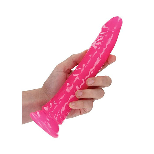 Shots RealRock 9" Slim Dildo Glow in the Dark - Neon Pink