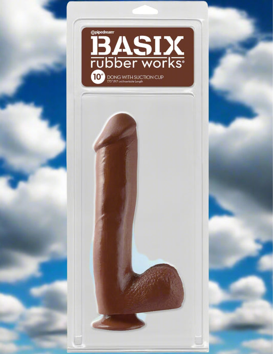 Basix Rubber Works 10" Dong with Suction Cup - Brown