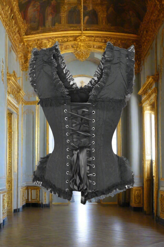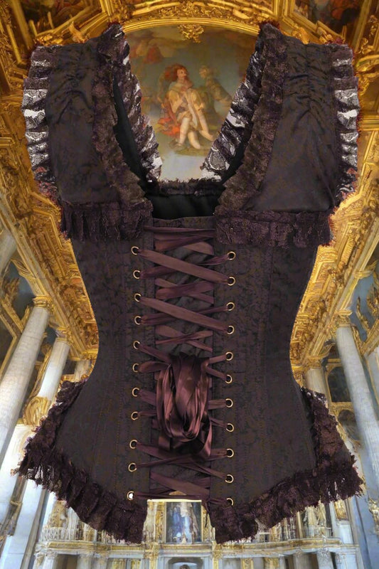 Brown Swirl Brocade and Lace Steel Boned Corset