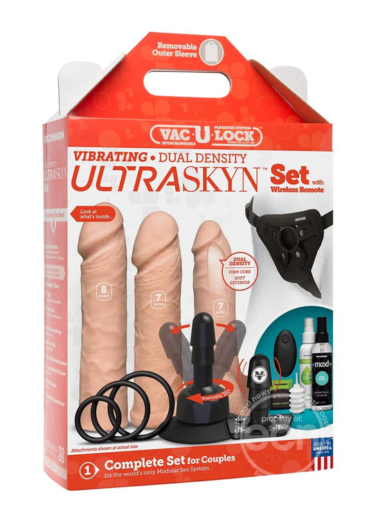 Vac-U-Lock Vibrating Dual Density Vanilla Ultraskyn Set with Remote Control