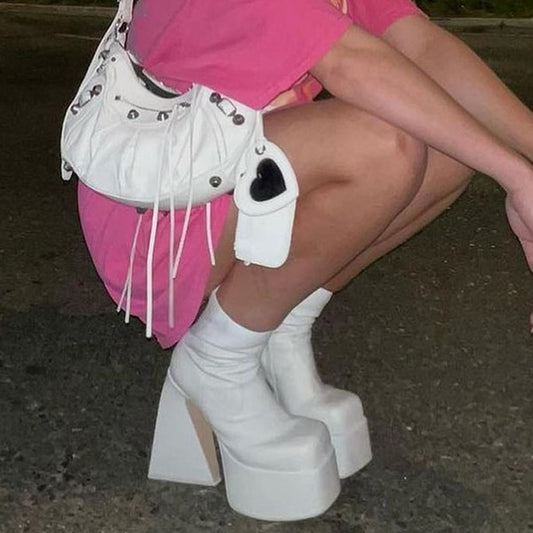 WOMEN CHUNKY PLATFORM SCULPTURAL SQUARE TOE BOOTS