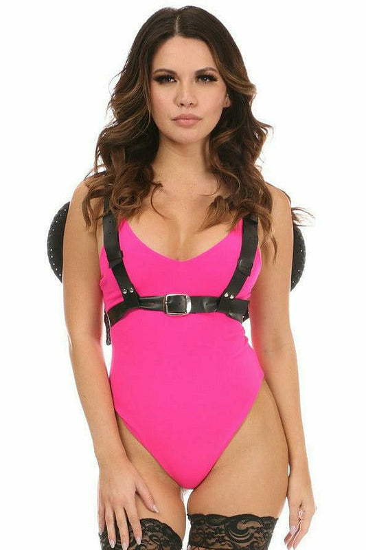 Black/Gold Strappy Harness Bra Top in Size Regular or Queen