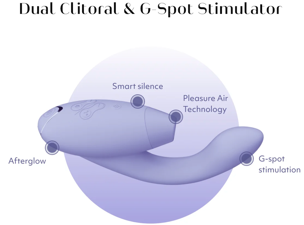 DUO 2 is a unique premium rabbit toy – a Pleasure Air clitoral stimulator and powerful G-Spot vibrator combined to create advanced, blended orgasms. Pleasure Air surrounds the clitoris with pulsating waves and gentle suction leading to a new kind of extraordinary orgasm. Dual Stimulation - DUO 2 simultaneously targets the G-spot with deep rumbly vibrations and the clitoris with suction-like Pleasure Air stimulation, creating satisfying blended orgasms. The flexible inner arm is curved upwards to target the G-spot with gentle vibrations. DUO 2 is waterproof (IPX7), making it easy to clean and enjoy anywhere outside of the bedroom. Find your rhythm with 10 different vibration patterns — from the wave to the cha-cha or just pure steady vibrations. 14-Intensity Levels - Now with an additional two intensity levels, DUO 2 can offer the right setting for every mood. Afterglow - By briefly pressing the power button, DUO 2 will quickly revert to a lower setting for a relaxing end to an orgasm. Smart Silence - DUO 2 automatically turns off when not in contact with skin.