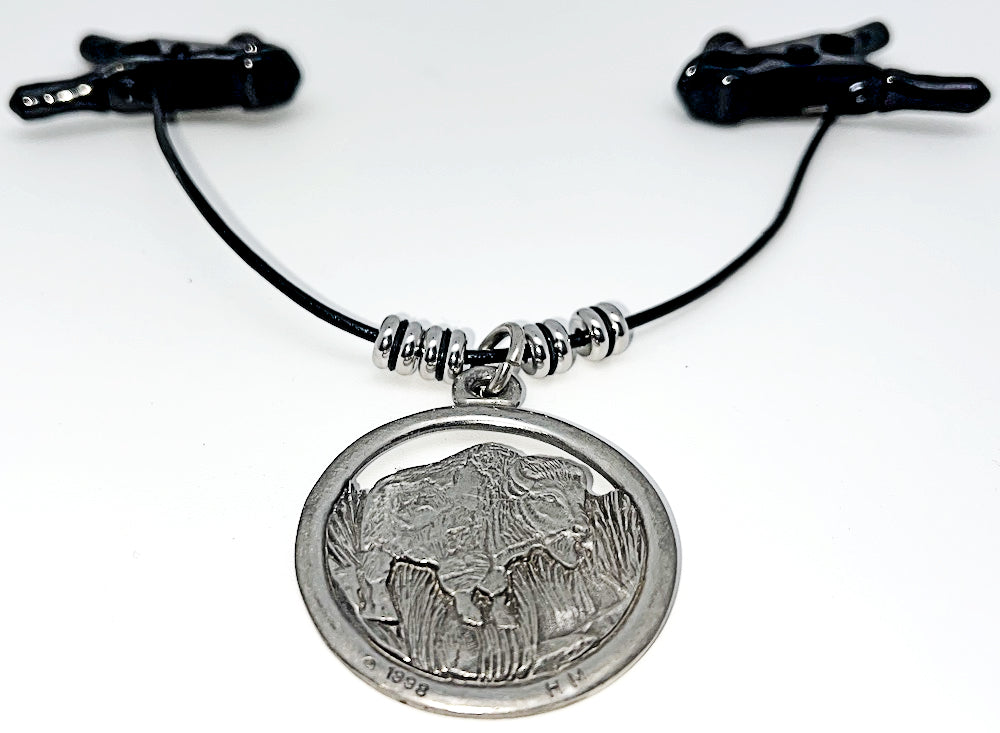 The Buffalo, Tatonka, or the Bison. Regardless of which name you use, images of the most majestic animal in North America appear in your mind. These adjustable bullnose nipple clamps are powerful, but incorporate an adjusting screw to bring the power down from a bite to a nibble. The medallion is pewter with 10% pure silver in the alloy. This set is part of our North American Wildlife Series. This incredible nipple clamp set is one of a kind and this one set is the only one that will ever be made.